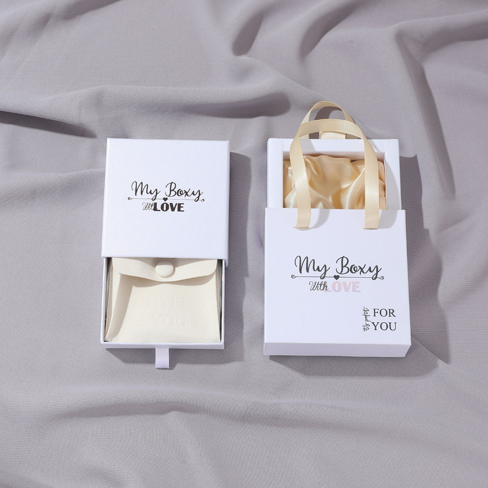 Caja de Embalaje de Papel para Joyería con Logotipo Personalizado y Asa para Anillos, Collares y Pulseras