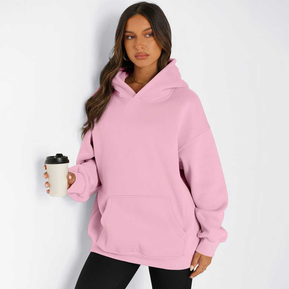 Sudaderas con capucha con hombros caídos y logotipo personalizado para mujer, ropa de calle, Tops de moda para exteriores, sudaderas con capucha rosas informales transpirables para mujer
