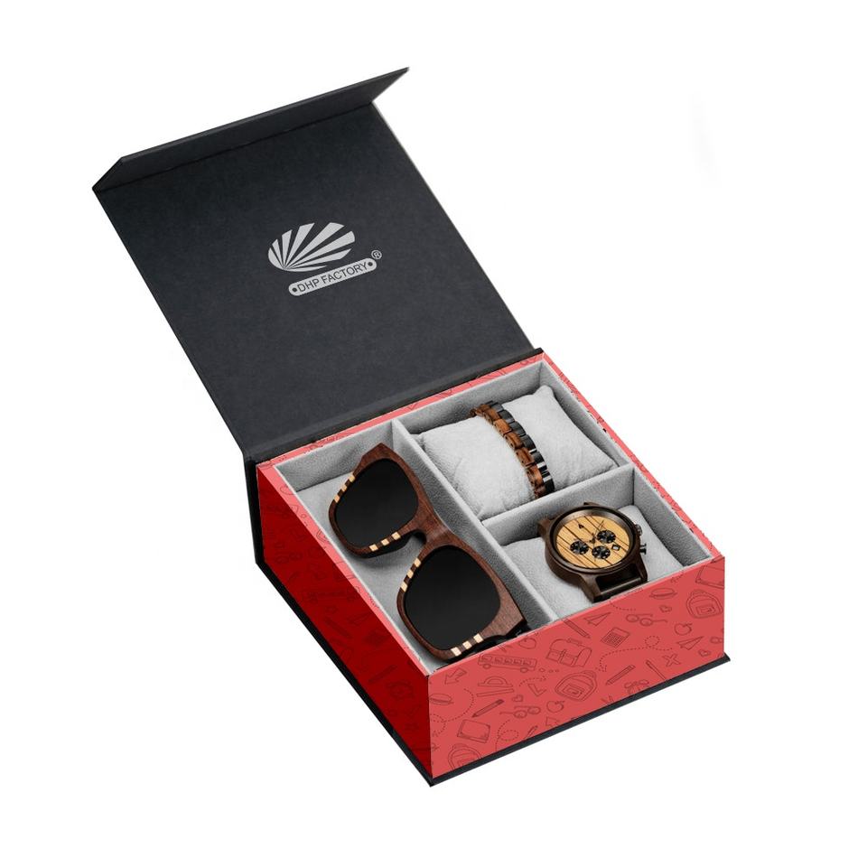 Reloj rígido duradero de cartón con logotipo personalizado, joyería, gafas de sol, organizador de almacenamiento, embalaje, caja de viaje