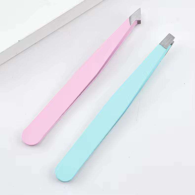 Pinzas para Cejas de Acero Inoxidable Duraderas con Logotipo Personalizado, Punta Inclinada, Herramienta de Maquillaje de Belleza con Color Personalizado, Proveedor de Marca Privada