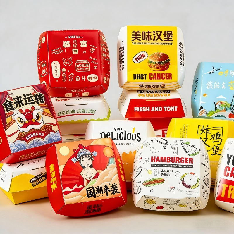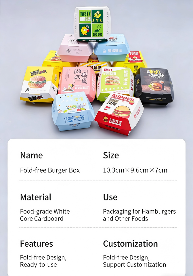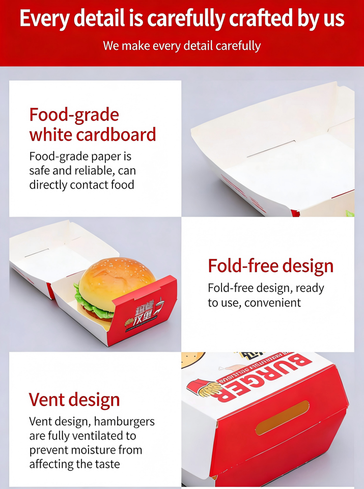Caja de Embalaje de Papel Ecológica Personalizada con Logotipo, Apta para Alimentos, con Relieve, para Comida para Llevar: Hamburguesas, Papas Fritas, Pollo Frito