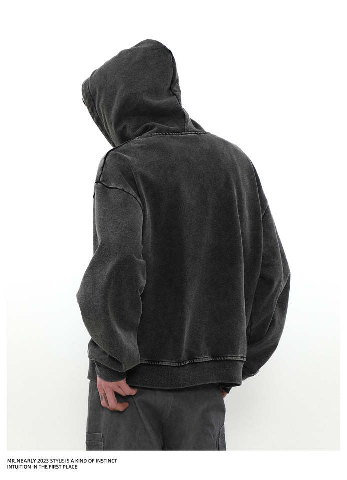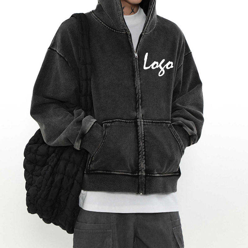 Sudadera con capucha para hombre con logotipo personalizado bordado 100% algodón Retro lavado ecológico en blanco con hombros caídos vintage lavado con ácido