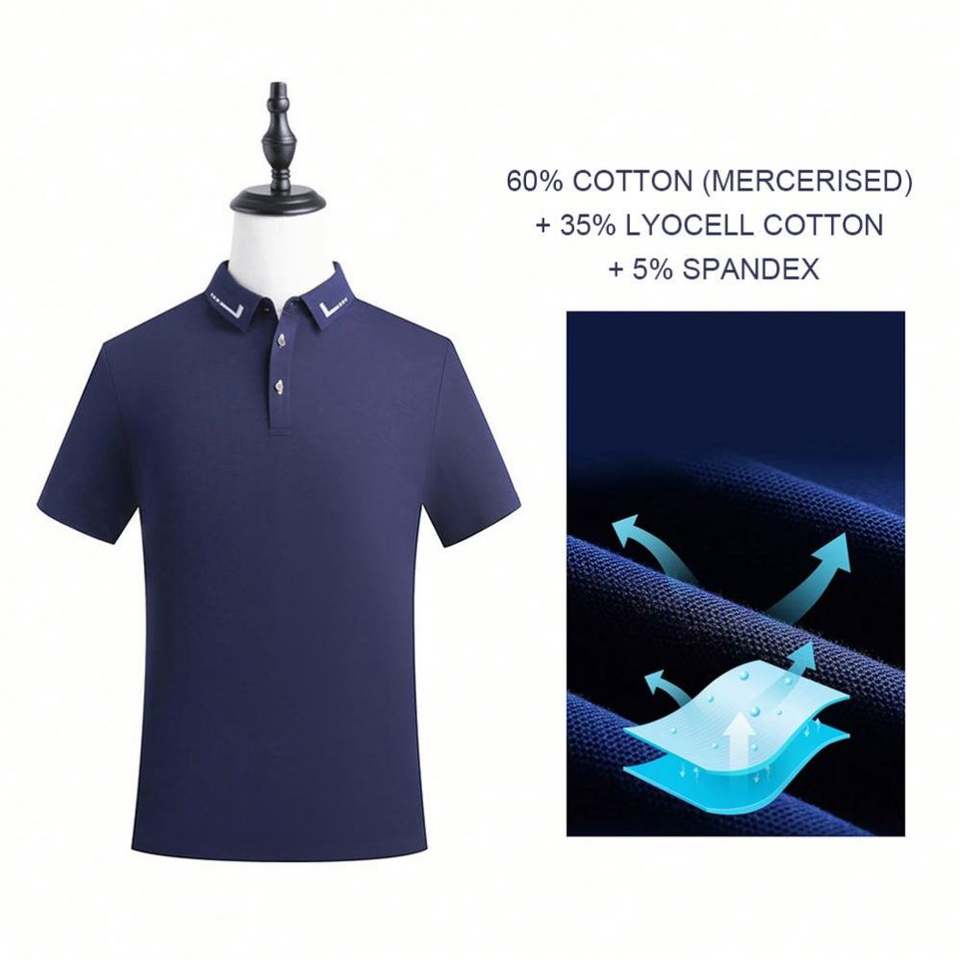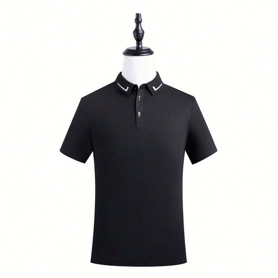 Camisas Polo de Golf Slim Negras de Algodón y Seda 100% con Logotipo Personalizado Bordado, Cuello de Dos Botones, Diseño Sólido con Patrón Impreso para Hombre