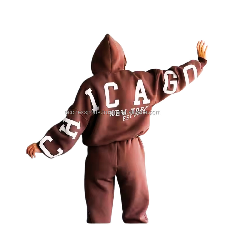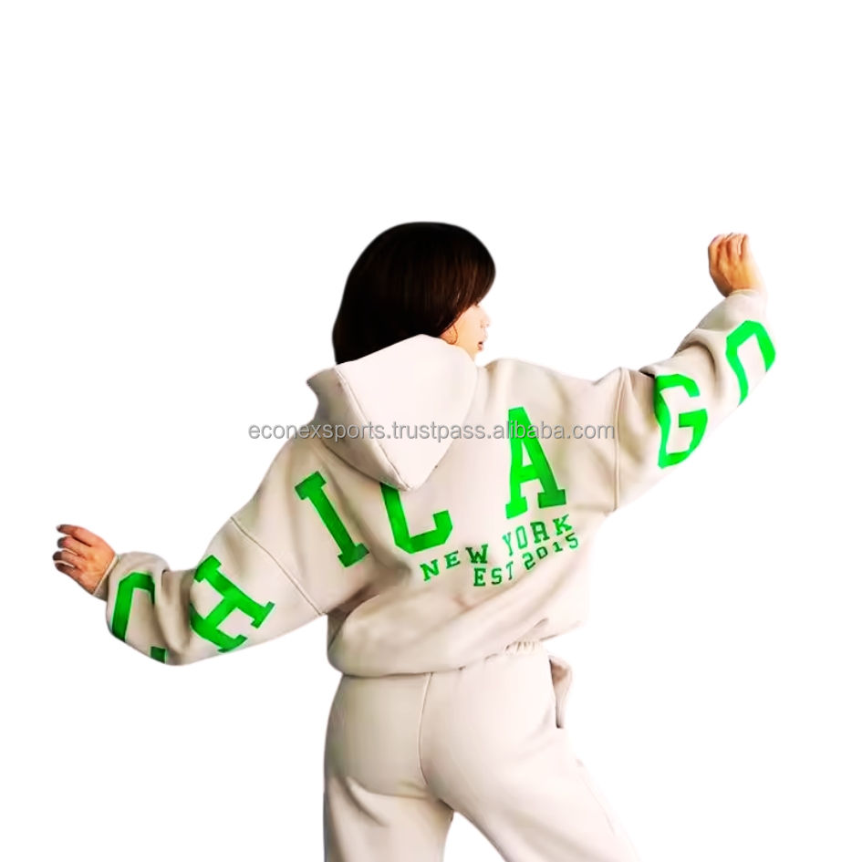 Conjunto de 2 piezas bordado con logotipo personalizado y hombros caídos, pantalones de chándal de gran tamaño, Sudadera con capucha, pantalones cortos para correr, sudadera de calidad en blanco