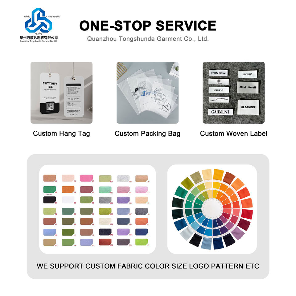 Técnicas:Impreso, Lavado, Bordado, Tela de retales, Tinte sencillo, Ropa teñida, Estampado de hojaldre, Flocado, Bordado de máquina, Bordado con rebordos, Bordado de lentejuelas, Bordado a máquina/Bordado automatizado, Bordado a mano, Spray PP/explosión de arena, Jacquard, Bordado liso, Bordado de lentuga