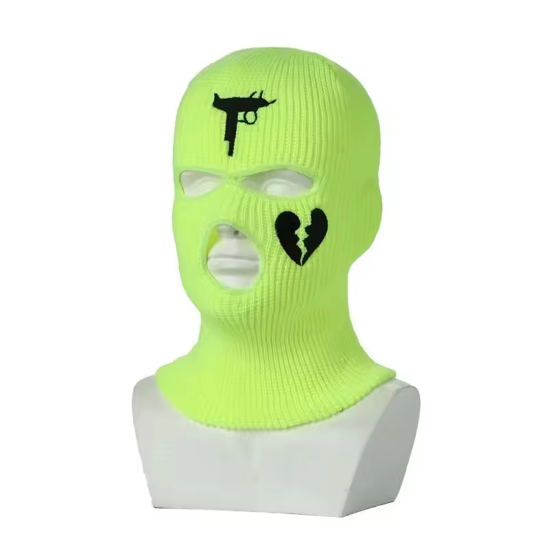 Logotipo personalizado bordado de punto de cara completa cubierta de la cara de esquí de tres agujeros pasamontañas personalizado bajo al por mayor