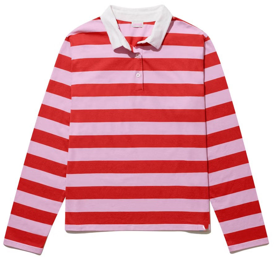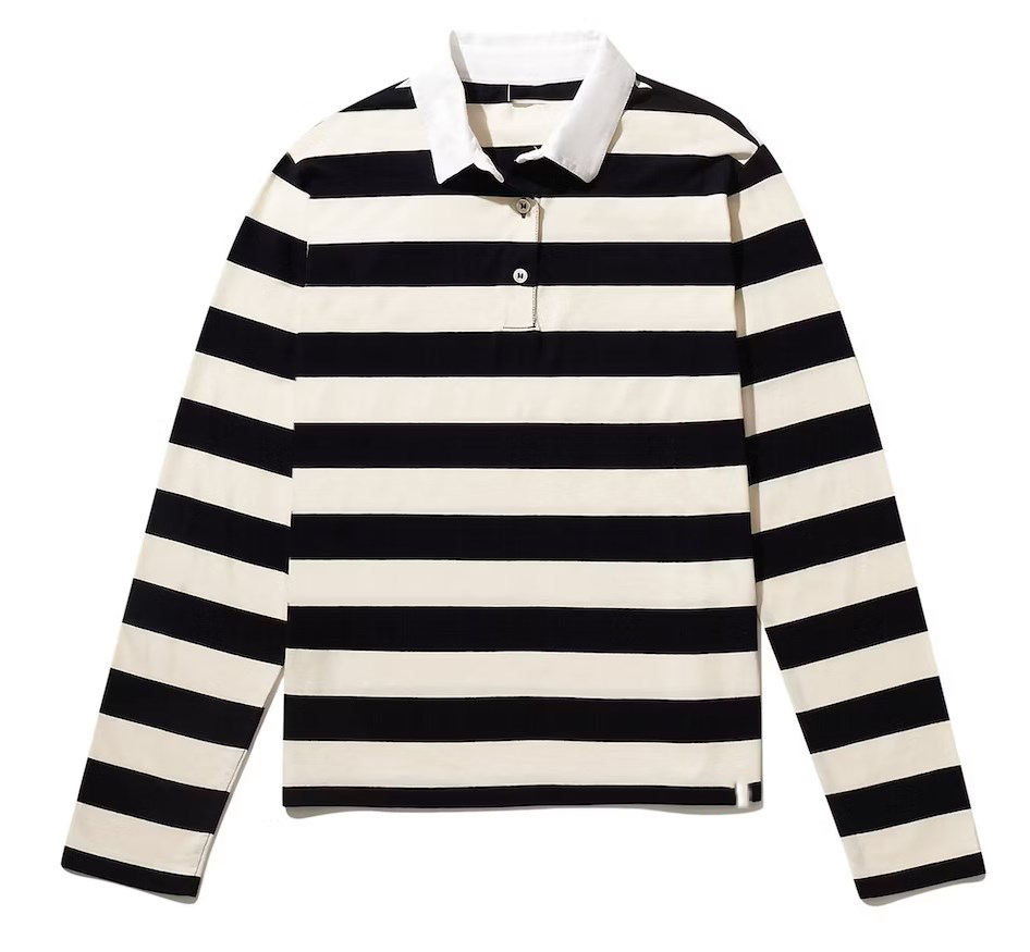 Polo clásico de algodón suave bordado con logotipo personalizado, camiseta de rugby de manga larga a rayas azules y blancas para mujer