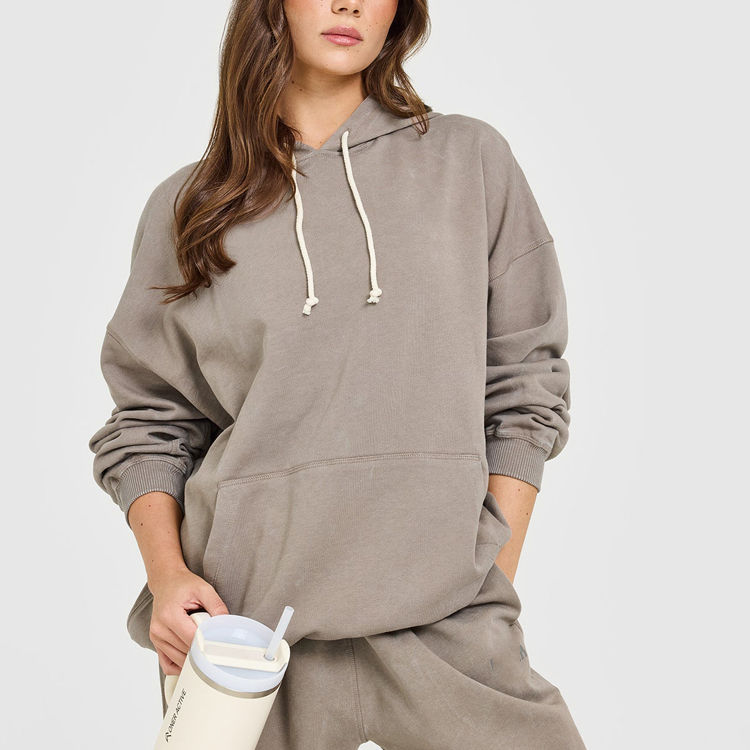 Ropa de estar para mujer con logotipo personalizado bordado, 100% algodón, felpa francesa, suave, ligera, transpirable, holgada, con capucha