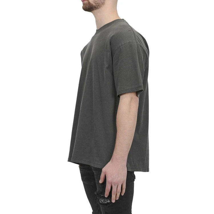 Camiseta lavada con ácido y bordado con logotipo personalizado para hombre, camisas tejidas informales con hombros caídos de algodón 100% de peso pesado