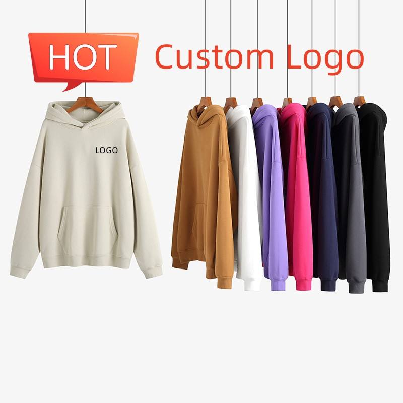 Sudaderas con capucha lisas de algodón pesado de 400GSM para hombre, logotipo personalizado bordado de invierno para estampado de hojaldre, sudaderas gruesas en blanco sin cuerda