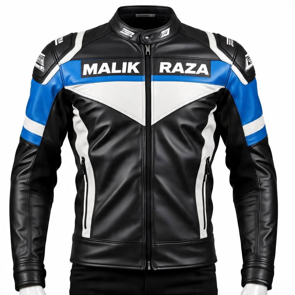Chaqueta de cuero para motociclista con estampado y bordado de logotipo personalizado | Etiqueta privada al por mayor | Malik Raza