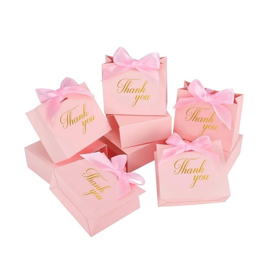 Bolsas de Regalo para Velas de Boda, Ecológicas, de Lujo, con Logotipo Personalizado, con Cordón, en Colores Rosa/Blanco, con Cinta Personalizable