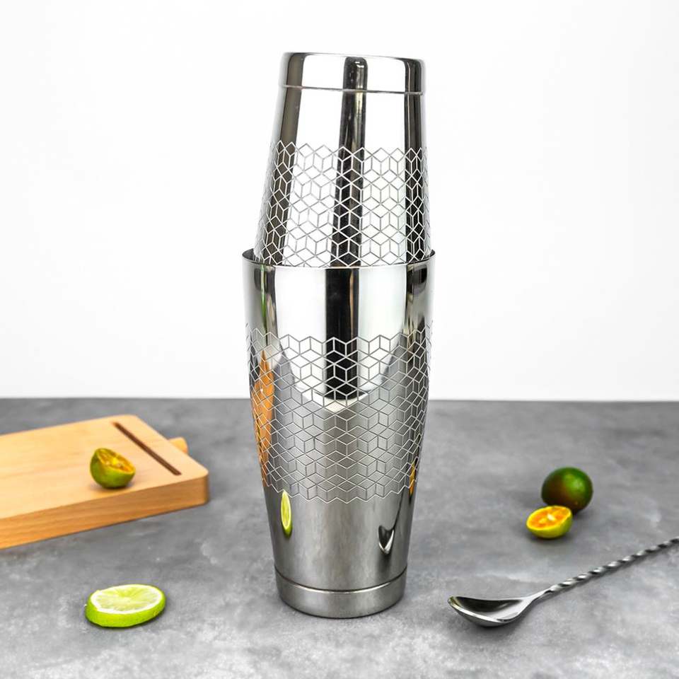 Coctelera Boston de Acero Inoxidable 18/8 de 850 ml con Logotipo Personalizado Grabado, Acabado Pulido Espejo y Base Pesada para Mezclar Cócteles
