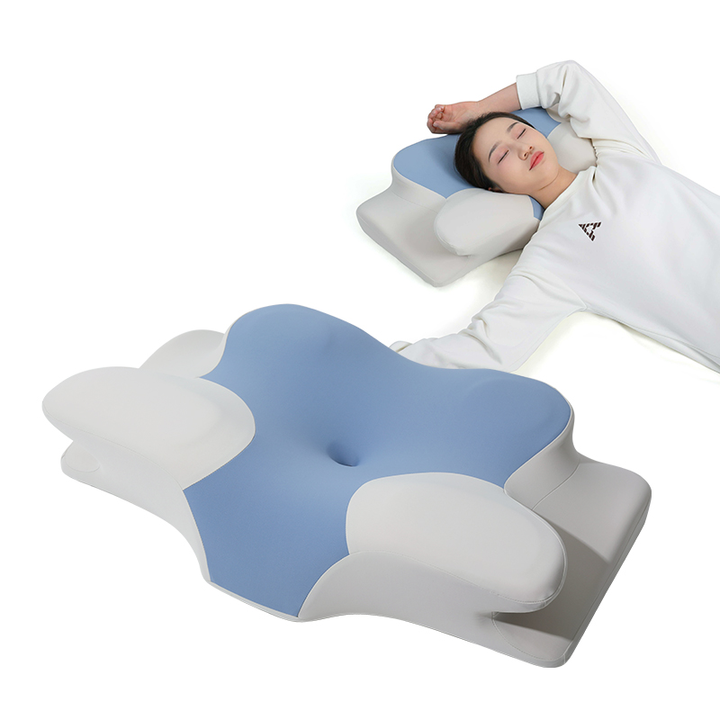 Almohada cervical ergonómica de espuma viscoelástica de rebote lento con logotipo personalizado, ortopédica, terapéutica, médica, para dormir de lado, con forma de mariposa.