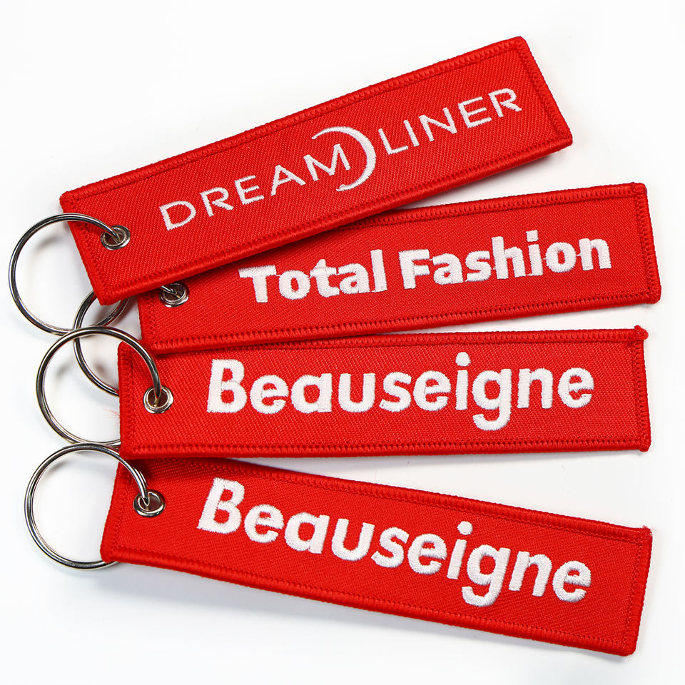 Llavero de tela con logotipo personalizado, llavero con etiqueta Jet, anillo personalizado, llavero bordado de doble cara con regalo promocional