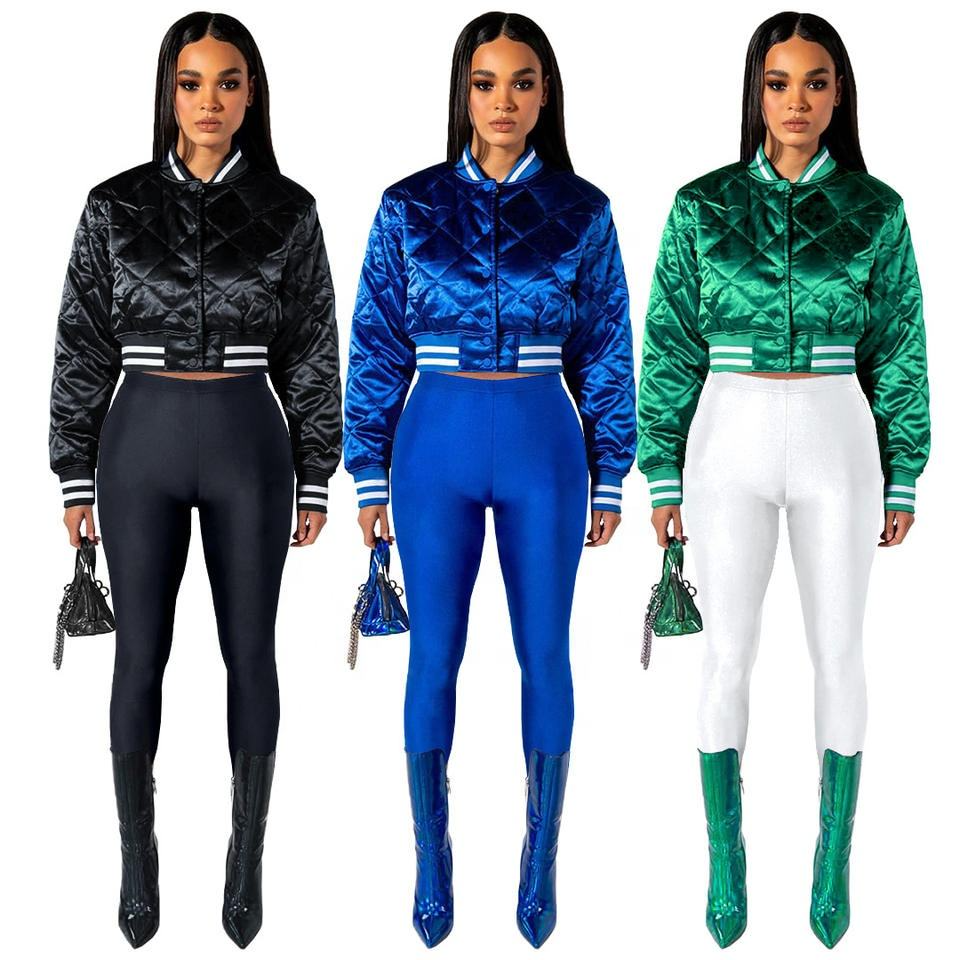 Chaquetas de béisbol negras de otoño con logotipo personalizado para mujer, ropa de calle, abrigos de burbujas de manga larga a cuadros, chaquetas de bombardero universitarias azules para mujer