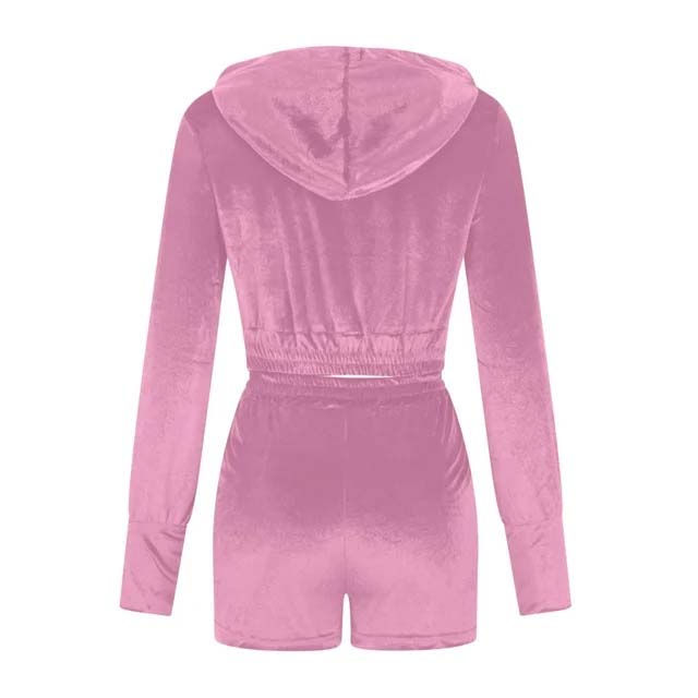Nombre del producto:Conjunto corto con capucha de terciopelo para mujer