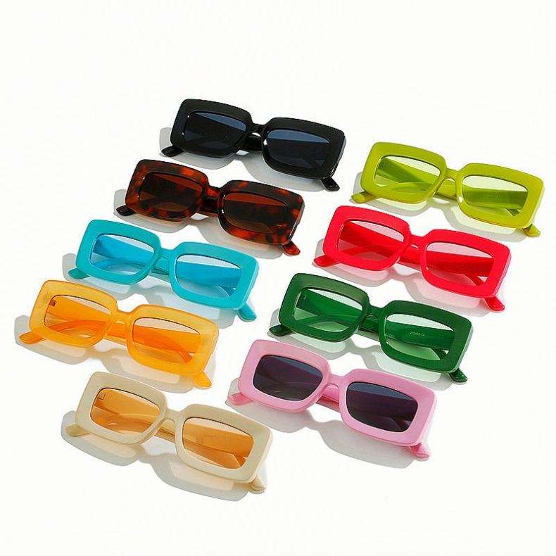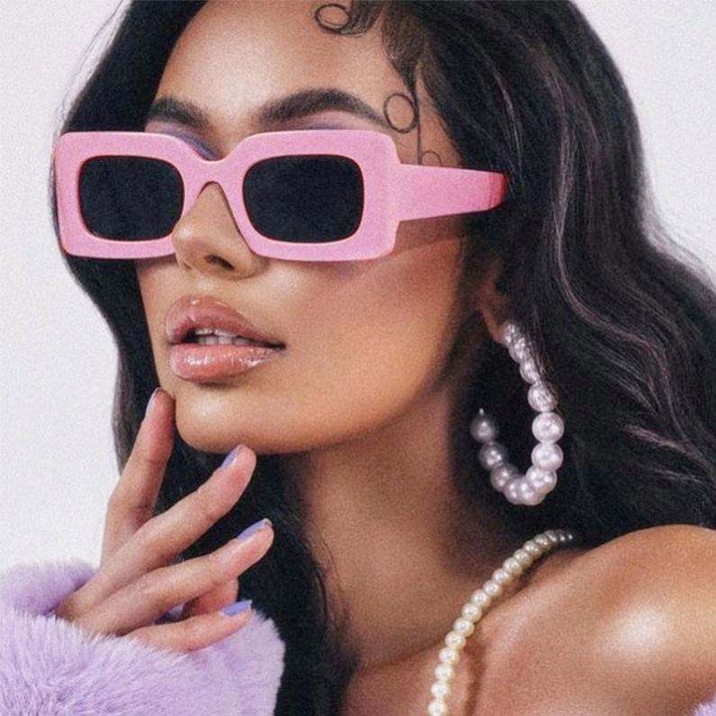 Gafas de Sol Personalizadas con Logotipo, Montura Cuadrada Pequeña y Colorida, Gafas de Sol Rectangulares Rosas para Mujer