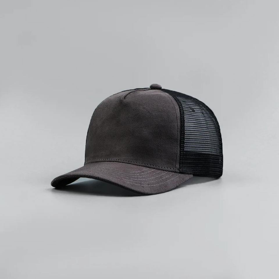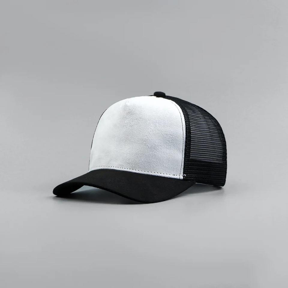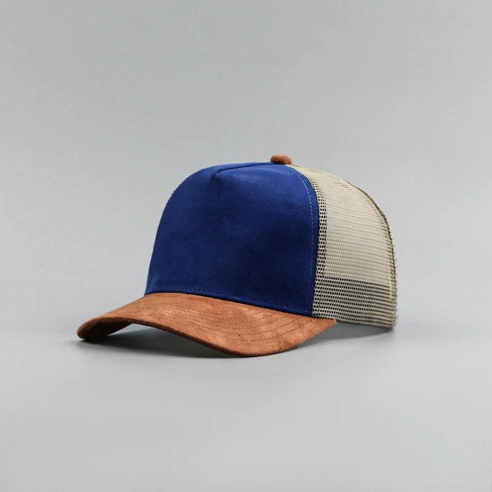 Gorra de béisbol de gamuza de cinco paneles con logo personalizado para hombre y mujer, gorra de camionero de malla a juego de colores para primavera y verano