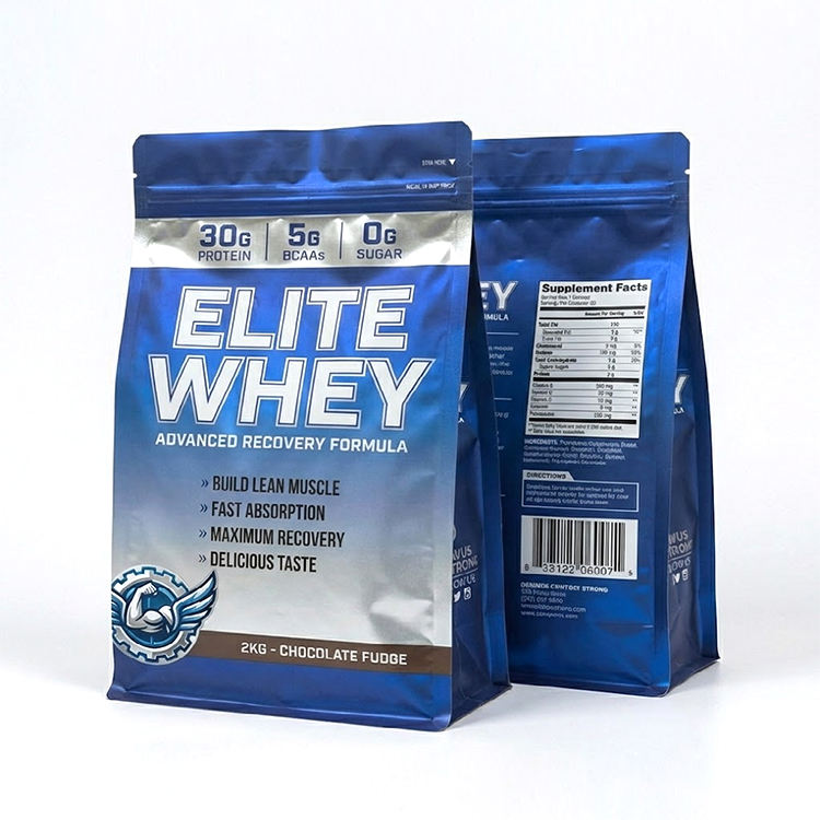 Bolsa de Embalaje de Proteína de Suero de Leche de 1 kg, 2 kg, 5 lb, con Fondo Plano, Cierre de Cremallera, Personalizable con Logotipo, Resellable