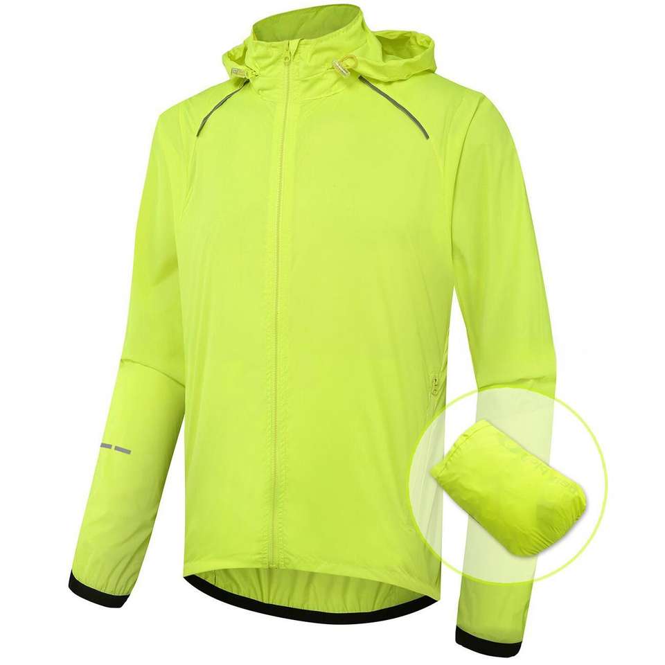 Chaqueta Cortavientos Ultra con Capucha Verde Fluorescente con Logotipo Personalizado para Hombre, Chaqueta Cortavientos Deportiva para Correr y Entrenar al Aire Libre