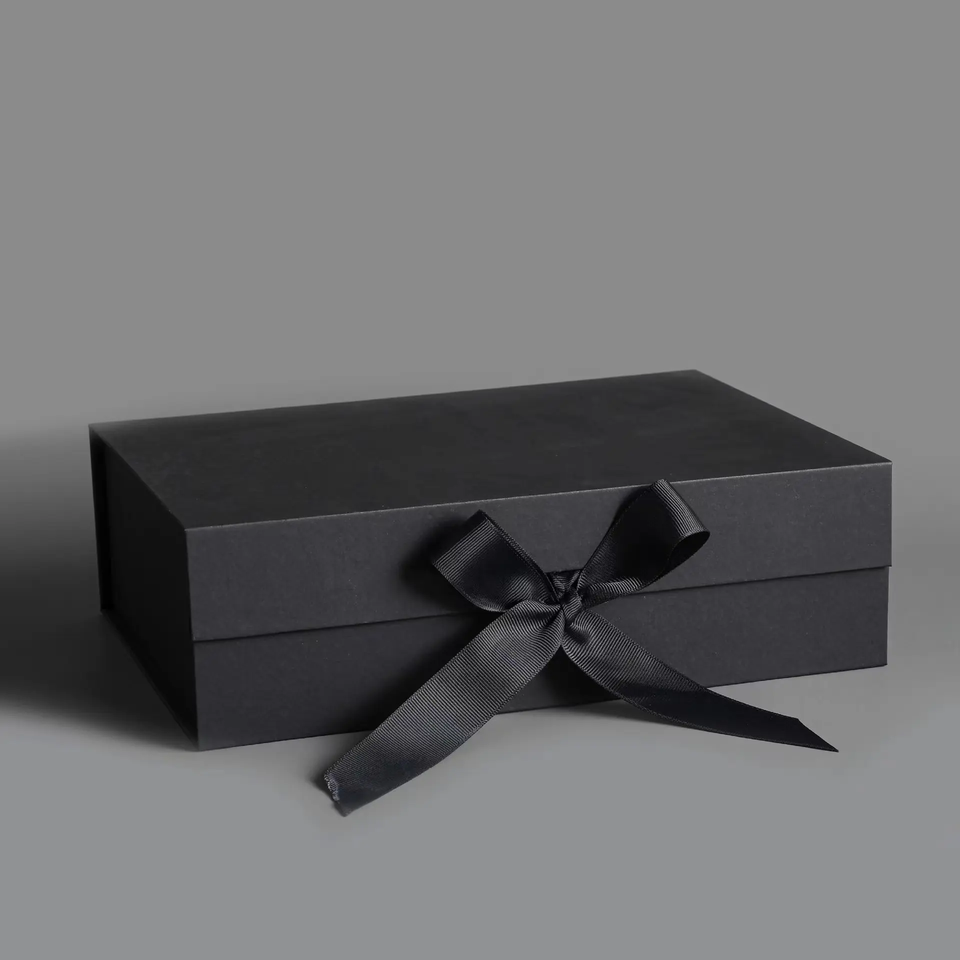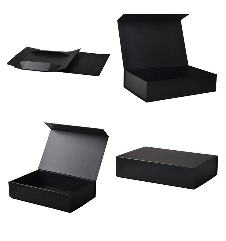 Caja de Regalo Plegable de Cartón con Logotipo Personalizado para Zapatos, Ropa y Ropa Interior, con Solapa Negra, Cierre Magnético y Lazo
