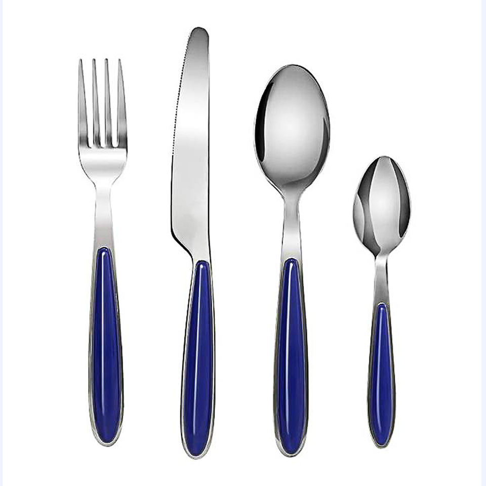 Logotipo personalizado Tenedor Cuchara Cuchillo Vajilla Cubiertos Juego de cubiertos Bandera de acero inoxidable Diseño Mango de resina
