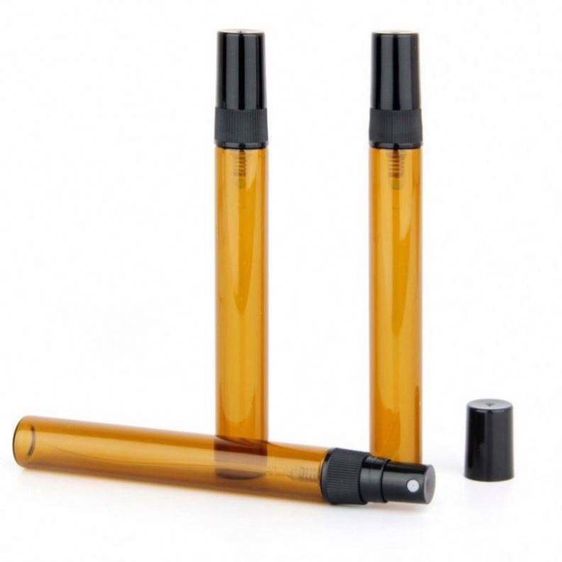 Botellas de Perfume de Vidrio Ámbar Cilíndricas Portátiles con Logotipo Personalizado, Muestra Gratis, Impresión Serigrafiada, de 2ML-10ML con Pulverizador para Viaje, Vacías