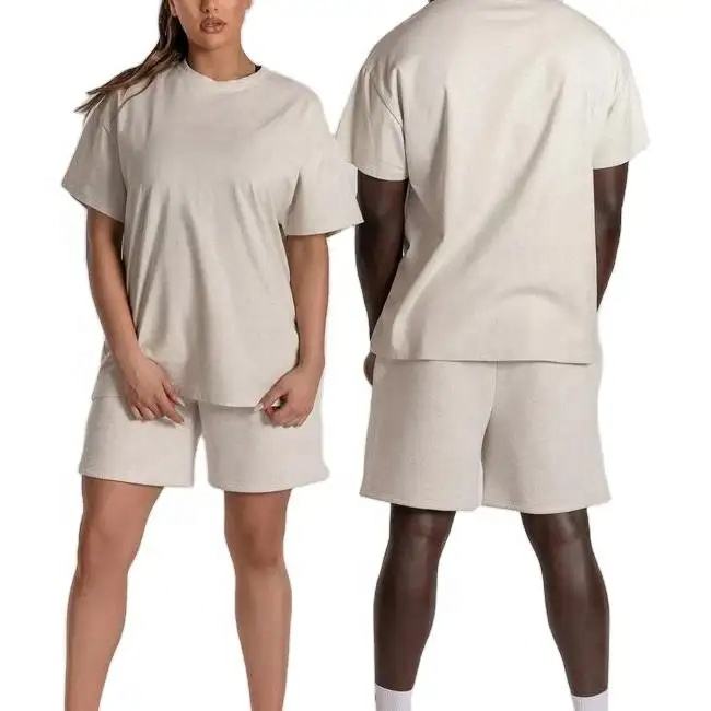 Conjunto de Pantalones Cortos y Camiseta de Manga Corta Oversize de Algodón Orgánico con Bordado de Logotipo Personalizado en el Pecho, Unisex, Estilo Urbano