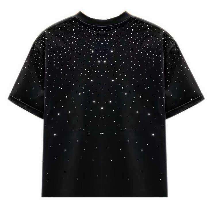 Camiseta de Algodón 100% para Hombre con Logotipo Personalizado, Totalmente Decorada con Pedrería, Camiseta Vintage de Alta Calidad con Lavado Ácido, Camiseta Gruesa para Hombre