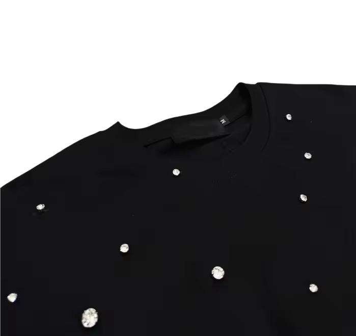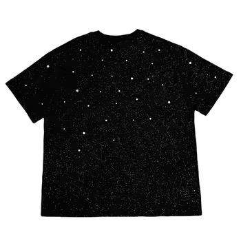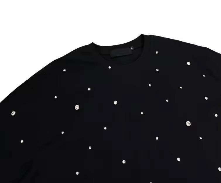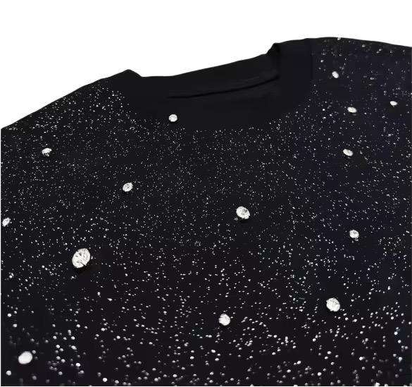 Camiseta de hombre 100% algodón con logotipo personalizado, totalmente adornada con pedrería, de alta calidad, lavado ácido, estilo vintage, de tela gruesa.