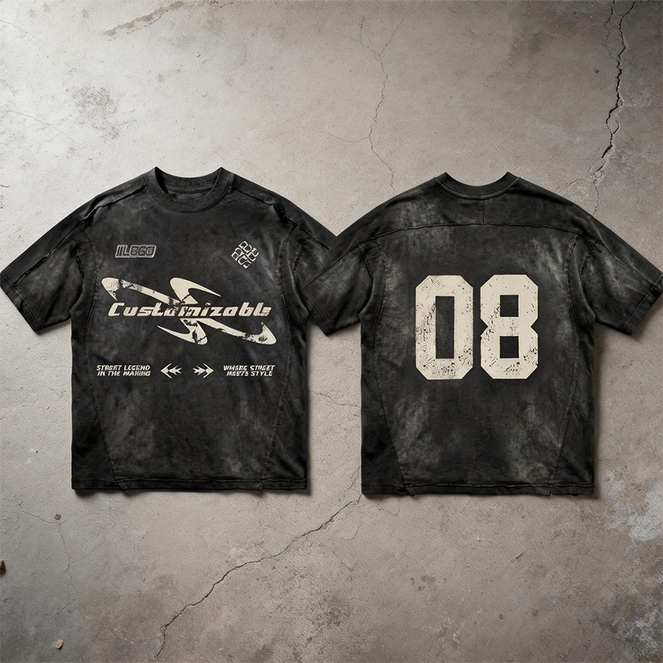Camiseta de Algodón Grueso Vintage con Estampado Gráfico por Sublimación y Logotipo Personalizado, Talla Grande, Estilo Desgastado, Lavado Ácido, para Hombre