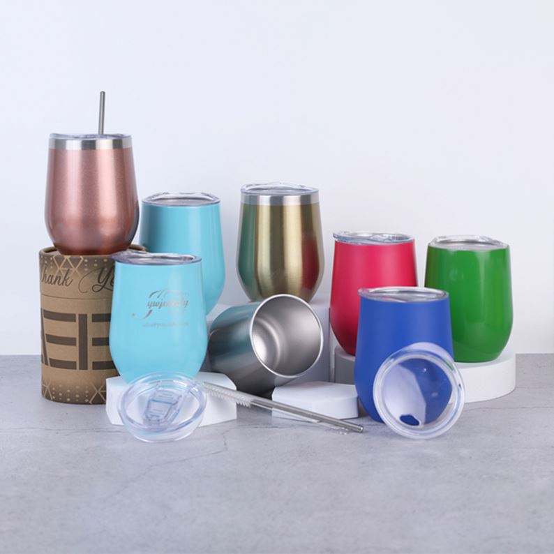 Vaso Térmico Personalizado con Logotipo, de Acero Inoxidable de 12 oz, Aislado, Sublimable, en Forma de Huevo, para Café, Vino, con Tapa
