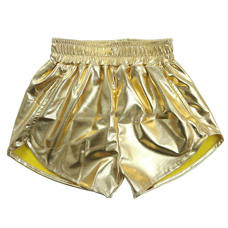 Pantalones cortos de tela metálica para niñas, pantalones cortos de cintura alta de cuero PU para gimnasio
