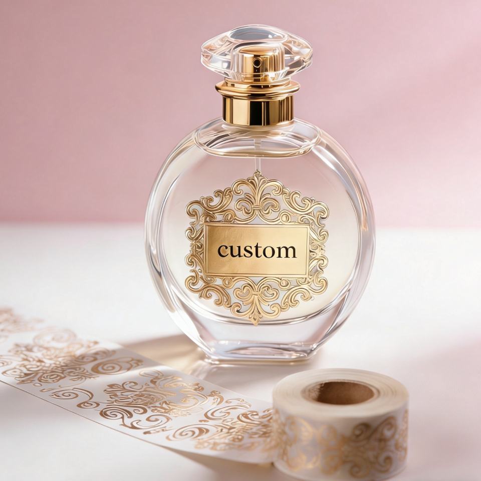 Etiqueta Adhesiva Impermeable con Logotipo Personalizado en Dorado, Rollo de Etiquetas de Lujo para Perfumes, Botellas de Cosméticos, Envases de Aluminio y Metal