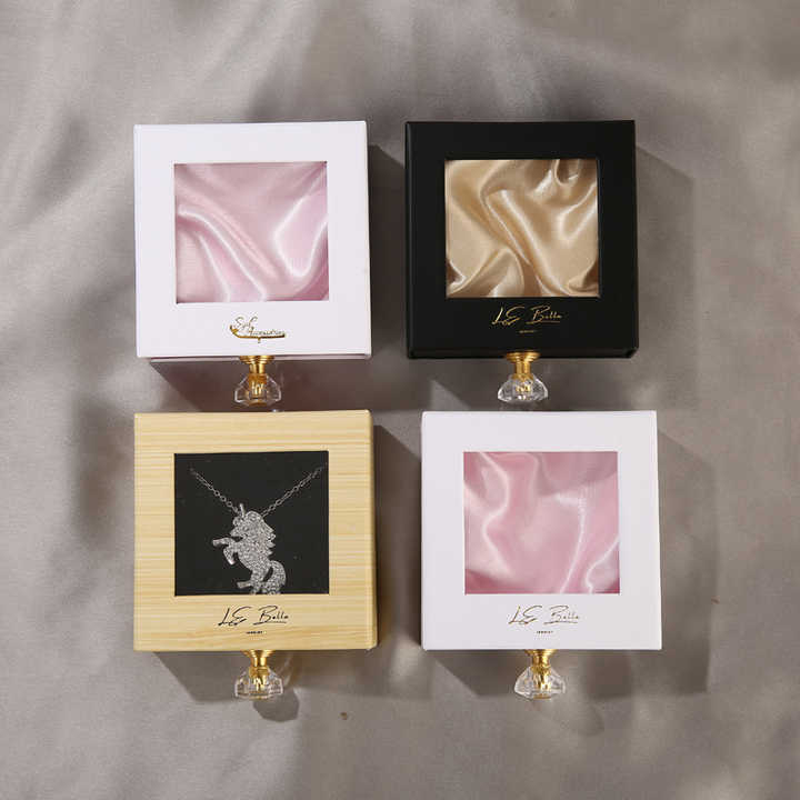 Caja de Joyería con Cajón Deslizable Hecha a Mano con Logotipo Personalizado para Colgante, Pulsera, Collar, Caja de Joyería de Papel con Ventana de PVC Transparente
