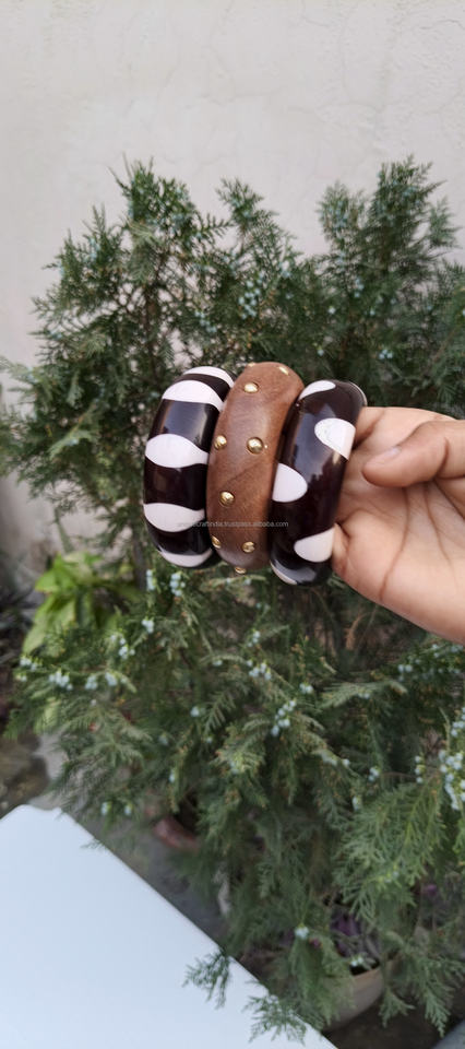 Pulseras de madera hechas a mano con logotipo personalizado para mujer, joyería de moda, fabricante al por mayor de la India.