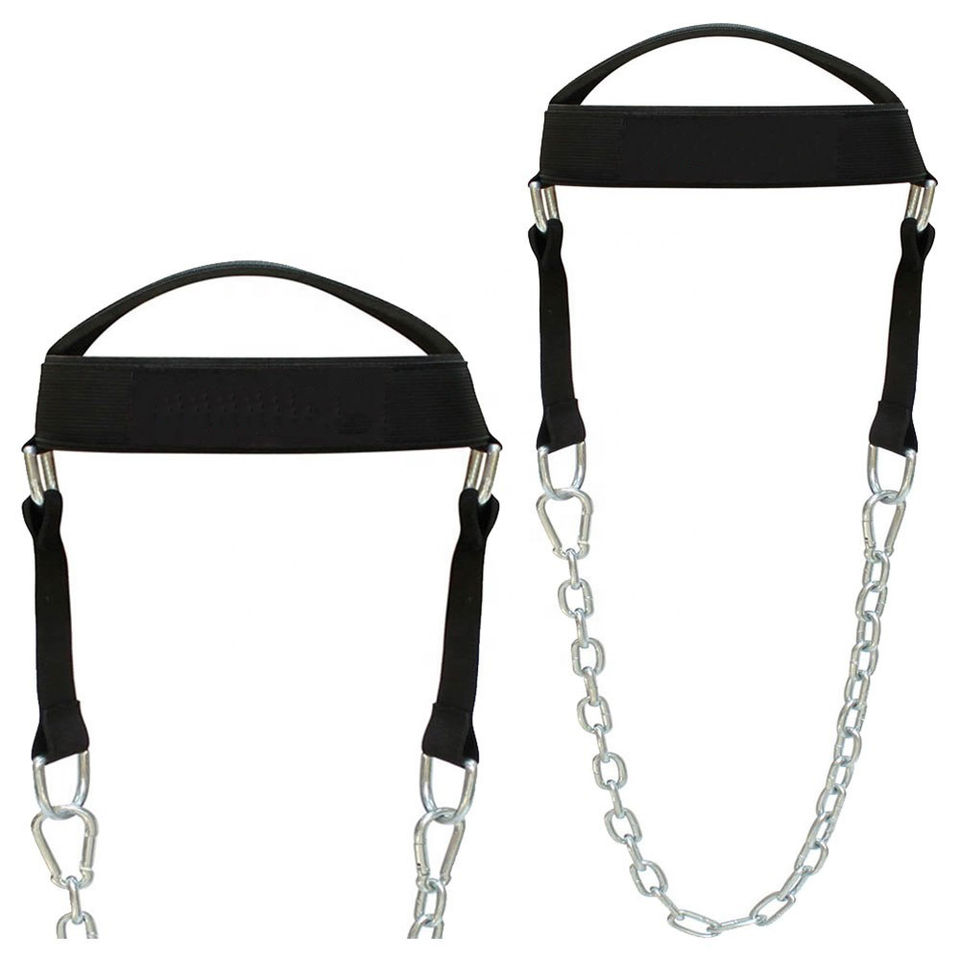 Arnés de Cabeza con Logotipo Personalizado, Correa de Cuello de Nailon Extra Resistente con Cadena para Levantamiento de Pesas Profesional y Gimnasios