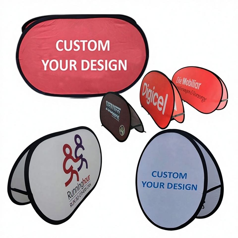 Expositor Publicitario Plegable Tipo Pop-Up con Logotipo Personalizado, Impresión por Transferencia de Calor, Marco Curvo, Material de Poliéster para Eventos
