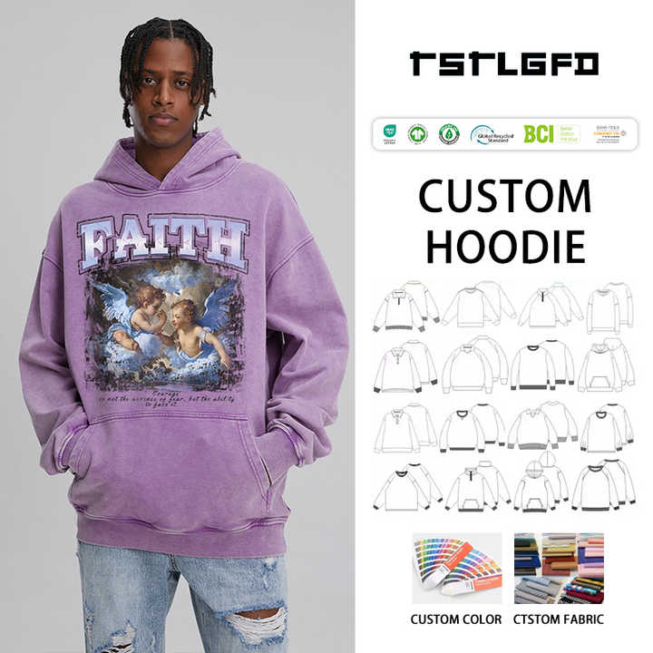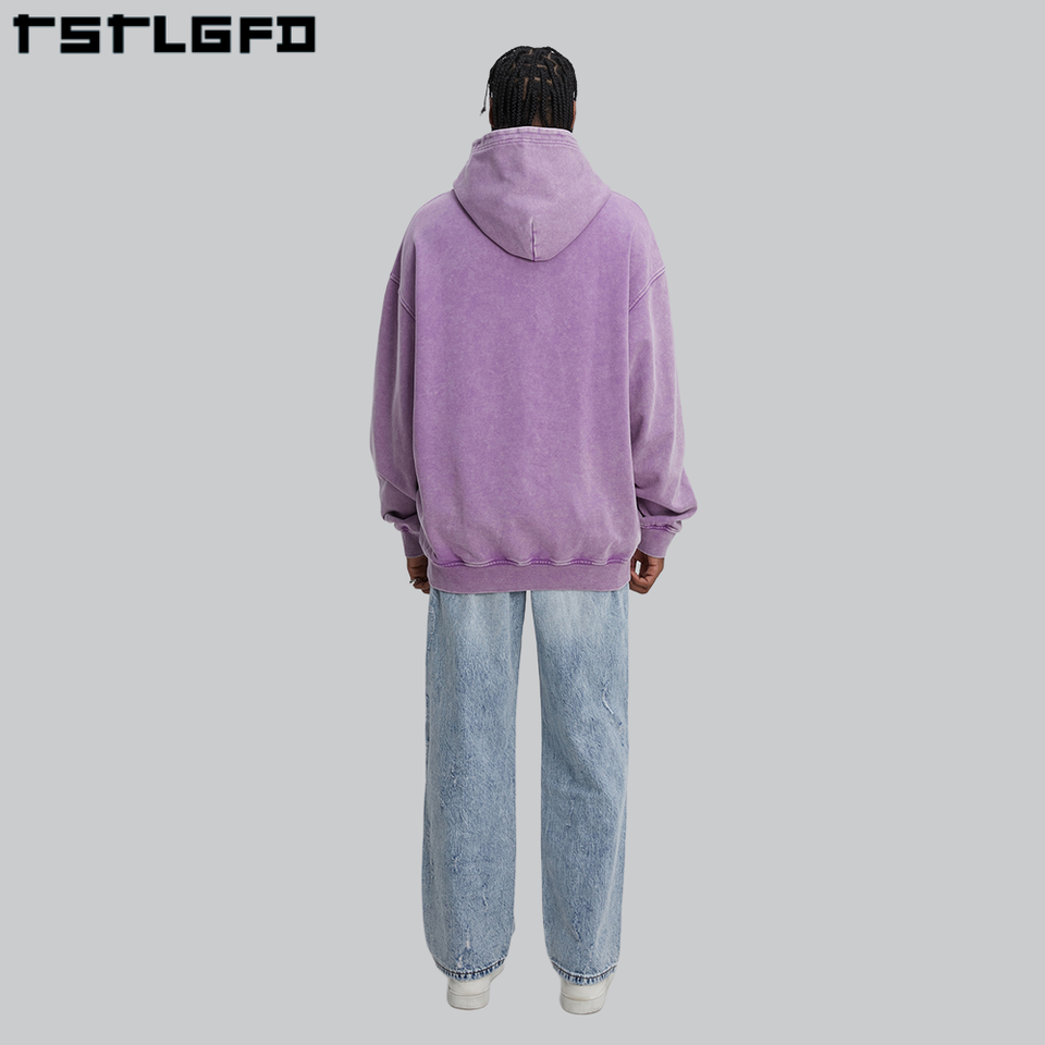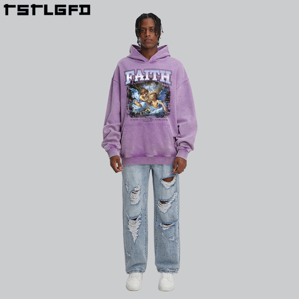 Sudadera con capucha de algodón orgánico y lavado ácido con impresión desgastada de peso pesado vintage de gran tamaño para hombre con logotipo personalizado