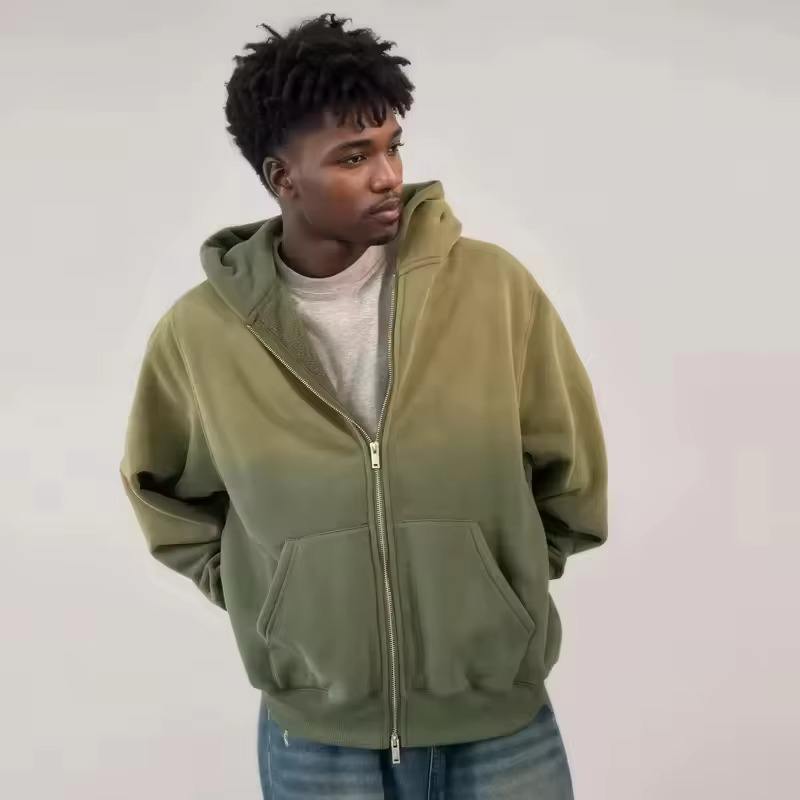 Sudadera con capucha con cremallera para hombre con lavado ácido de tela de rizo francés pesado con logotipo personalizado sudaderas con cremallera Unisex Vintage de fabricante personalizado