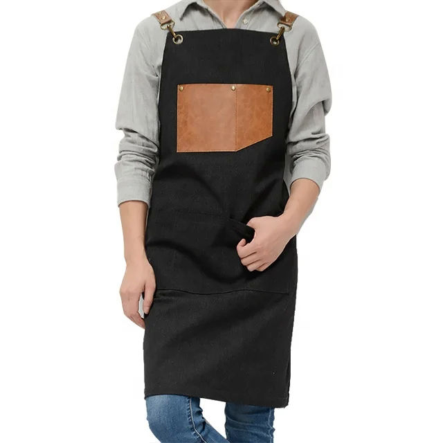 Logotipo personalizado hebilla ajustable alta lona de algodón negro restaurante uniforme camarero herramienta trabajo floristería jardín elegante delantal