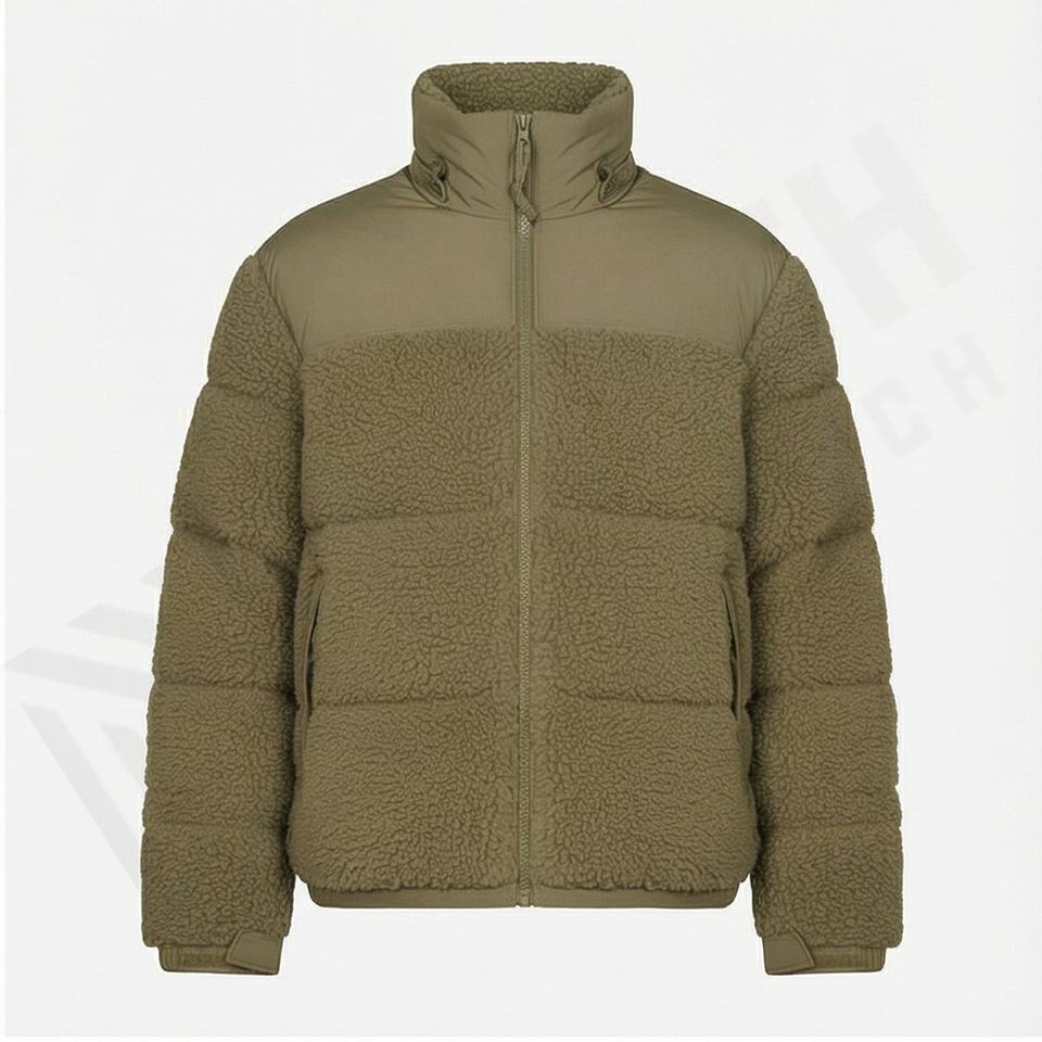 Logotipo personalizado de cuello alto para hombres al aire libre Sherpa Puffer chaqueta superior de invierno con capucha Abrigo acolchado hombre Puffer sudadera chaquetas para hombre de moda
