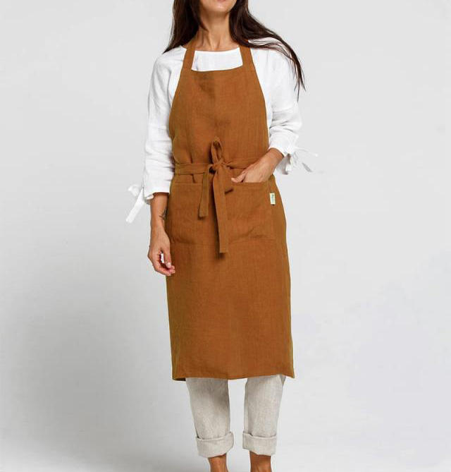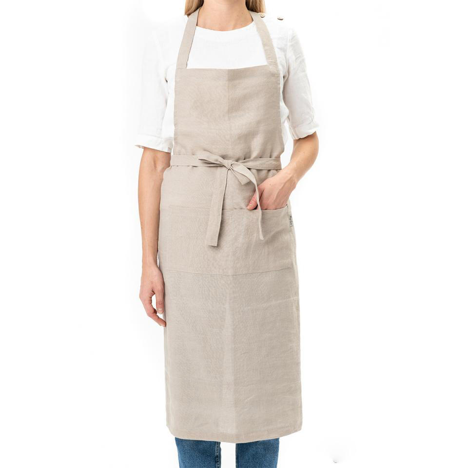 Delantal unisex ajustable de alta calidad con logotipo personalizado para hombre y mujer delantal con babero de lino con bolsillos