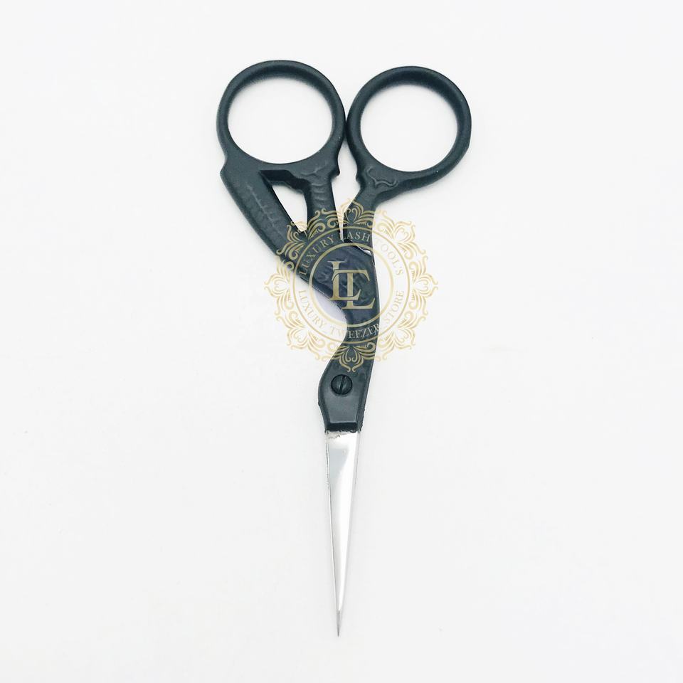 Tijeras para pestañas en forma de pájaro de alta calidad con logotipo personalizado, tijeras de manicura sostenibles con recubrimiento en polvo negro, afiladas para el cuidado de las uñas