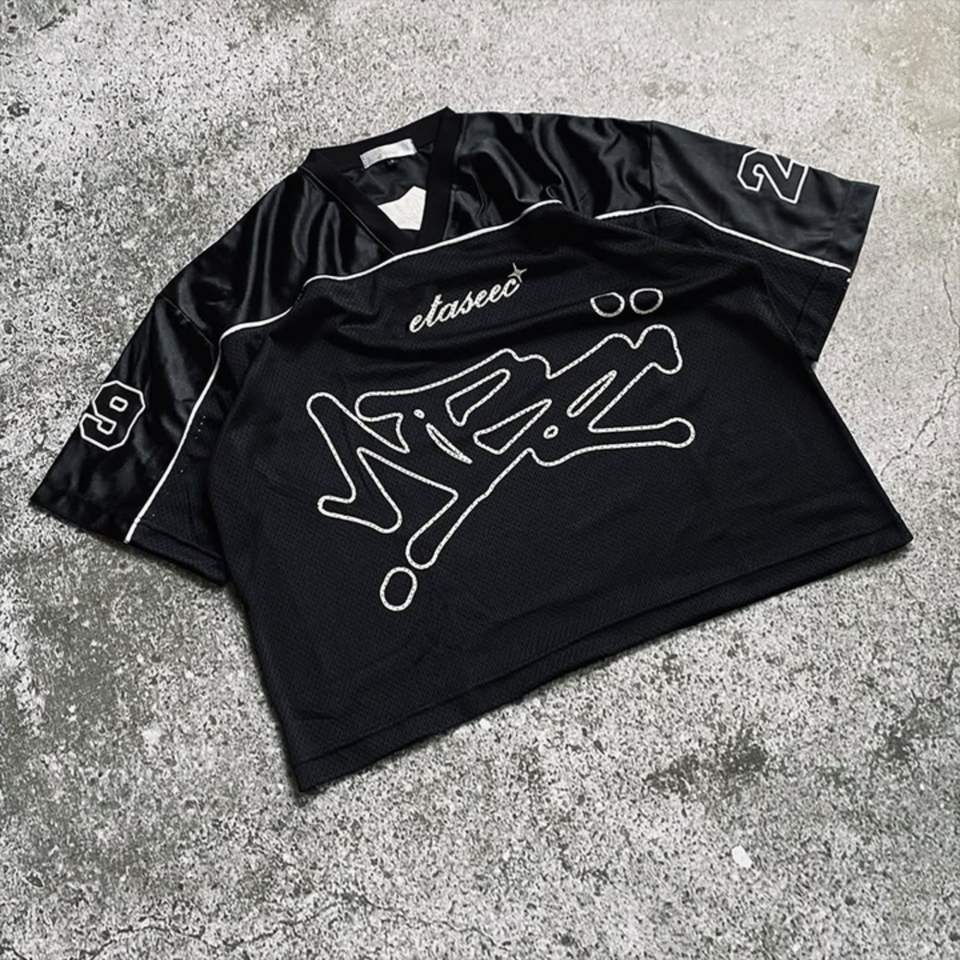 Camiseta de Fútbol de Malla Oversize con Logo Personalizado de Alta Calidad, Estampado Serigrafiado, Estilo Vintage para Hombre