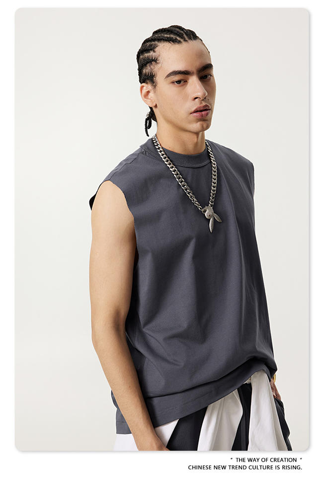 Chaleco Personalizado con Logotipo de Alta Calidad para Hombre, Tejido Grueso, Bordado, Estilo Hip Hop, Informal, Deportivo, Transpirable, de Algodón Vintage