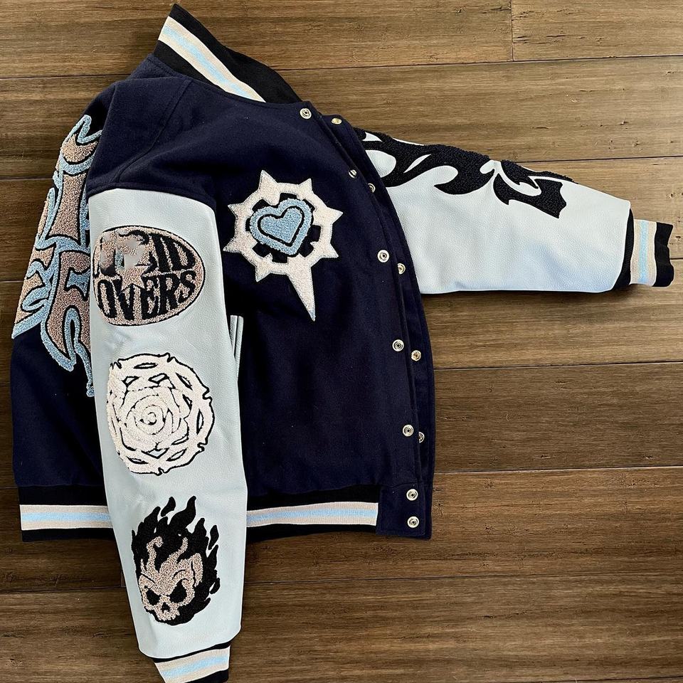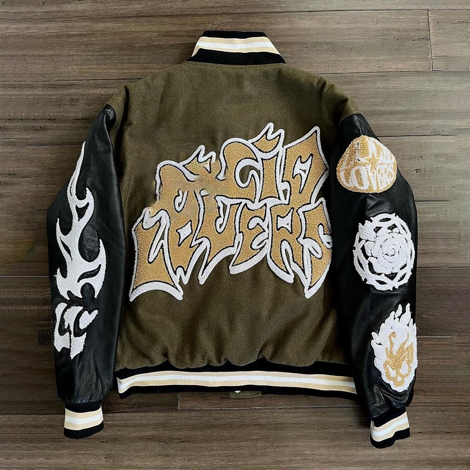Chaqueta Universitaria Personalizada con Logotipo, 100% Lana, para Hombre, Ecológica, Transpirable, con Parche Bordado de Chenilla, Diseño Regular