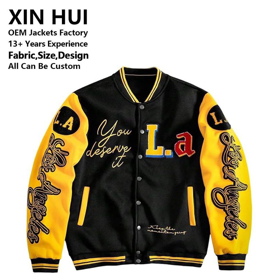 Chaqueta Varsity Hip Hop con Logotipo Personalizado para Hombre, Chaqueta Bomber con Bordado y Parches, Chaqueta Universitaria Unisex