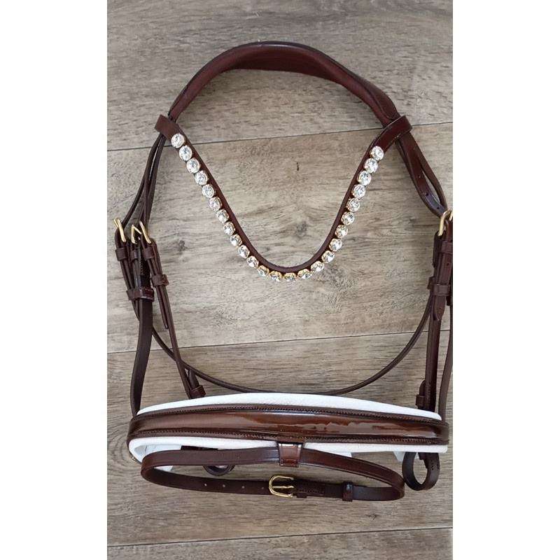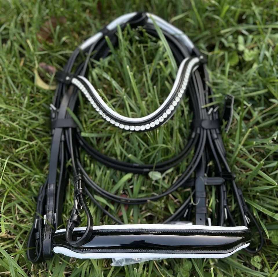 Brocas de equitación con logotipo personalizado, brida de caballo de charol auténtica de alta calidad, Productos Ecuestres occidentales duraderos
